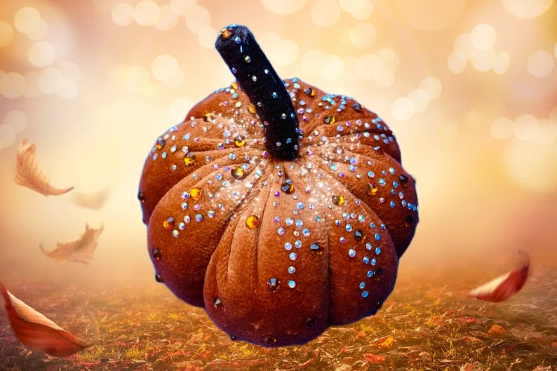A gorgeous large decorated pumpkin.